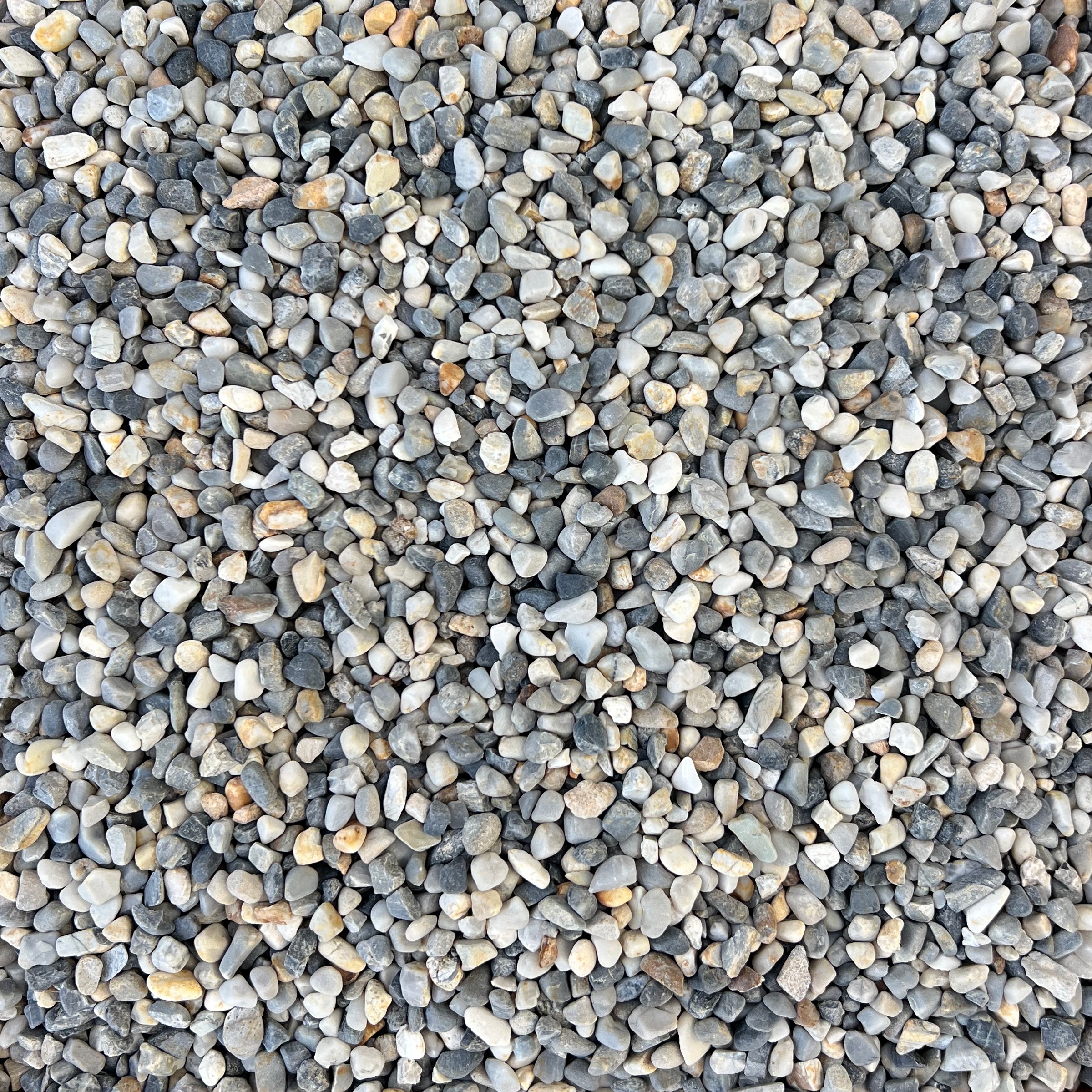 Our Grey Blend Pea Gravel is a subtle mix of primarily shades of grey with a few other contrasting colored pebbles added in, perfectly suited for countless landscaping applications. All our rounded aggregate is kiln-dried, so it is commonly used as a seeding aggregate and in epoxy-resin flooring systems.